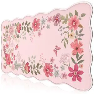 HAOCOO Desk Pad Mat, Pink Scalloped Desk Pad, Computer Desk Mat, Non-Slip Desk Pad for Keyboard and Mouse, Large Desk Mouse Pad with Egde Stitched, Waterproof Floral Keyboard Mat for Office (Hot Pink)