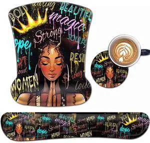 Keyboard Wrist Rest and Mouse Pad Wrist Support Set, Ergonomic Gel Mouse Pad Wrist Rest with Non-Slip Base for Home Office Desk Pad, African American Black Women Graffiti Girl Gaming Mouse Mat