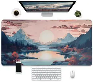 Large Gaming Mouse Pad, Mountain Lake Landscape Design, 31.5 x 15.7 inches, Non-Slip BaseWaterproof
