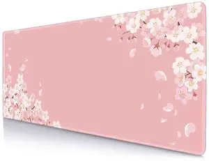 IMAYONDIA Pink Japanese Desk Mat, Cherry Blossom Large Gaming Mouse Pad, Non-Slip Rubber Base Mousepad for Women, Desk Pad for Work, Game, Office, 31.5x11.8 Inch- Sakura Flowers Aesthetic