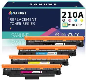 SANUNE 210A Toner Cartridges 4 Pack with chip Compatible for HP 210 A 210X Toner Cartridges Set for Color Laser Jet MFP 4301dw 4301fdn 4301fdw 4201dw 4201dn Printer Ink (1 Black/Cyan/Yellow/Magenta)