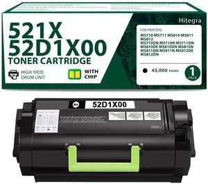 Extra High Yield 52D1X00 Toner Cartridge Black Replacement for Lexmark 52D1X00 Toner 521X Compatible with MS710 MS711 MS810 MS811 MS812 Series Printer Black Toner, 1-Pack for 45,500 Pages