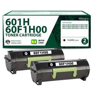 Compatible 601H 60F1H00 Toner Cartridge Black 2-Pack Replacement for Lexmark 60F1H00 601H Black Toner Work with MX310 MX410 MX510 MX511 MX610 MX611 Series Printer Toner, High Yiled 10,000 Pages