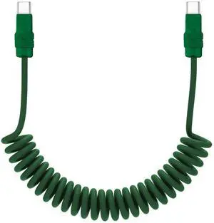 chubbycable Curly Chubby Retractable Fast Charging Cable 120W Coiled Charger Cord for Car Durable USB C Cable Compatible with iPhone 17-15 Series, Green+Green, Type-C to Type-C, 2.13FT-6.56FT