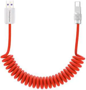 chubbycable Curly Chubby Retractable Fast Charging Cable 120W Coiled Charger Cord for Car Durable USB C Cable Compatible with iPhone 17-15 Series, Red, USB-A to Type-C, 2.13FT-6.56FT