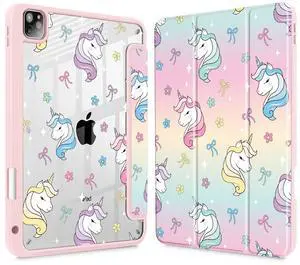 Lepeoac Case for iPad Pro 11 inch (4th, 3rd, 2nd & 1st Gen) 2022 2021 2020 2018, Buit in Pencil Holder with Shockproof Cover Clear Shell + Auto Wake/Sleep,Rainbow Unicorn