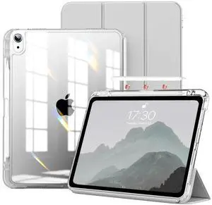 kenke Hybrid Case for iPad Air 11 Inch (M3) 2025 / (M2) 2024, iPad Air 5th/4th Gen 2022/2020 10.9 Inch with Pencil Holder, Detachable Cover with Clear Hard Back Shell, Auto Sleep/Wake, Gray White