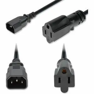 AddOn 3ft C14 Male to C15 Female Standard Commercial 14 AWG 250V at 15A PVC SJT Service Junior Thermoplastic Black Power Cable