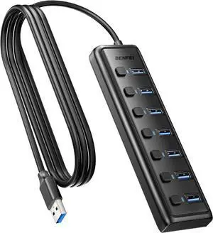 ONFINIO USB Hub 3.0 7-Port USB Hub Splitter with Individual On/Off Switches and Lights 3.2ft/1m Long Cable Compatible with MacBook Laptop Surface Pro PS4 PC Flash Drive Mobile HDD