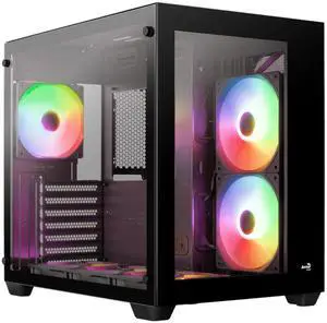 AeroCool P300C Mid-Tower Dual Chamber PC Case 3 Pre-Installed Fans High-Airflow Panoramic Tempered Glass RGB Lighting 360mm Radiator Support Customizable Cooling System Cable Management Gaming Builds