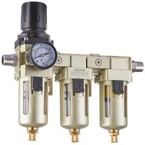 VEVOR Air Compressor Filter Regulator Combo, 1/2" NPT 3-Stage 25m & 5m & 0.3m Compressed Air Drying System with Micron Filters & Oil-Water Separator, Semi-Auto Drain, 175PSI Max Working Pressure