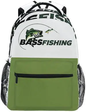 Pfrewn Largemouth Bass Fishing Backpack for Boys Men Travel Laptop Backpack Daypack Bag 17 Inch