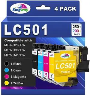 KINGWAY LC501 Ink Cartridges Combo Pack Replacement for Brother LC501 Printer Compatible with MFC-J1260DW MFC-J1360DW MFC-J1410DW Printers (4 Pack, Black Cyan Magenta Yellow)