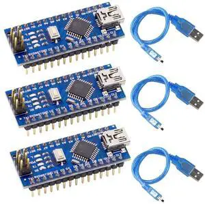 FainWan 3pcs Mini Nano V3.0, Nano Board ATmega328P CH340 5V 16MHZ Micro-Controller Board Compatible with Ar-duino IDE Mega2560 Rasp-Berry Pi (Nano x 3 with USB Cable)