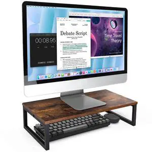 ARCOBIS 20 Inch Monitor Riser, Wood & Metal Computer Monitor Stand Riser for Desk, Rustic Brown