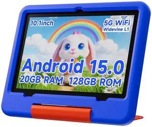 Android 15 Tablet 10 Inch with Case, 18GB RAM 128GB ROM, 1280 x 800 IPS HD Widevine L1, Octa-Core, 1TB Expandable, WiFi 6, BT5.4, Dual Camera 5MP+8MP, 6000mAh, GPS, Dual Speakers