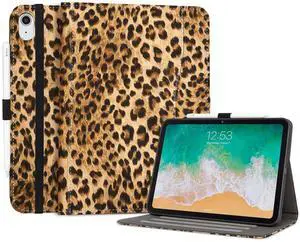 Lokigo Case for Leopard iPad (A16) 11th Generation 11 Inch 2025, iPad 10th Gen 10.9 Inch 2022, Build with Pencil Holder/Hand Strap/Pocket, Shockproof 11th/10th Gen Stand Cover, Brown Cheetah