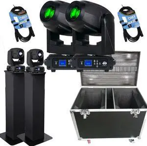 (2) American DJ Focus Spot 5Z 200 Watt, Road Case Dual With Wheels, (2) Rockville Totem Moving (RTP32B), (2) DMX Cables Bundle