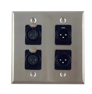 Dual Gang Stainless Steel Wall Plates with Two XLR Female/Two XLR Male