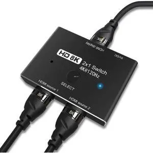 8K HDMI 2.1 Switch 4K@120Hz 8K@60Hz, Bi-Directional 2 in 1 Out HDMI Switcher with Remote, Aluminum HDMI Splitter 2 in 1 Out Ultra HD Compatible with PS5 Xbox Fire Stick and More (Black)