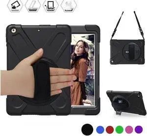 For iPad Mini Case iPad Mini 1 2 3 Case Cover ShockProof Rugged Hybrid Protective Silicone Case For Apple iPad Mini 1 2 3 Case with with 360 Degree Rotating Kickstand Hand Grip Strap Shoulder Strap