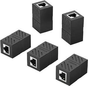 Aomoproing RJ45 Coupler Ethernet Extender Connector 5 Pack Inline Coupler Cat7 Cat6 Cat5e Ethernet Cable Adapter Female to Female Black
