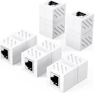 Aomoproing RJ45 Coupler Ethernet Extender Connector 5 Pack Inline Coupler Cat7 Cat6 Cat5e Ethernet Cable Adapter Female to Female White
