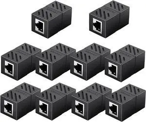 Aomoproing RJ45 Coupler Ethernet Extender Connector 10 Pack Inline Coupler Cat7 Cat6 Cat5e Ethernet Cable Adapter Female to Female Black