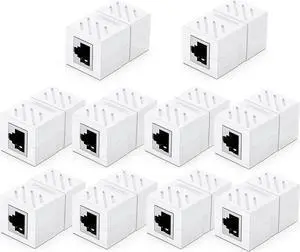 Aomoproing RJ45 Coupler Ethernet Extender Connector 10 Pack Inline Coupler Cat7 Cat6 Cat5e Ethernet Cable Adapter Female to Female White