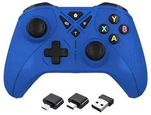 Aomoproing Wireless 2.4G multi;.functional game controller compatible with pc, $witch, Android TV Box, dual vib ration macro progamming controller blue