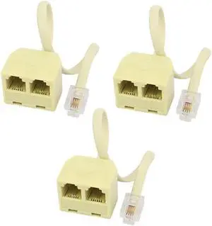 [RJ11 Telephone Adapter] 3PCS 2-Way RJ11 6P4C Telephone Plug to RJ11 6P4C Socket Adapter and Splitter for Landline Telephone