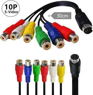 Aomoproing FOR 10 Pin Audio and Video DIN Cable S-Video 10Pin to 6RCA Female Cable - RGB Component and Composite 0