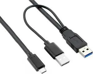 Aomoproing FOR USB 3.0 Male USB 2.0 Dual Power Data Y to Type-C USB-C Cable for Laptop Hard Disk