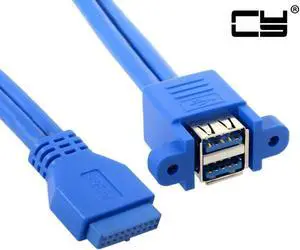Aomoproing FOR USB 3.0 Female Panel Type Dual Ports to Motherboard 20Pin Header Stackable Extending Cord for Adapter Converter Cable 50cm
