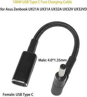 Aomoproing 100W USB 3.1 Type C Fast Charging Cable for Zenbook UX31A UX32A UX32V UX32VD USB-C to 4.0*1.35mm Plug Adapter Connector
