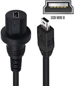 Aomoproing 1m Waterproof Dustproof 480Mbps Mini USB2.0 5Pin Male to Female Extension Data Power Cable Car Panel Mount Design