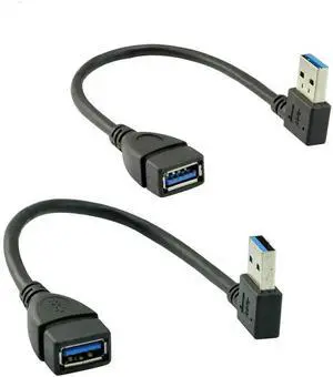 SuperSpeed USB 3.0 Male to Female Extension Data Cable Left and Right Angle 2PCS by Oxsubor(20CM,8IN)