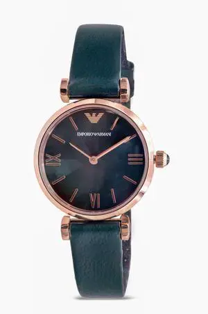 Emporio Armani Rose Gold-Tone green Leather Ladies Watch