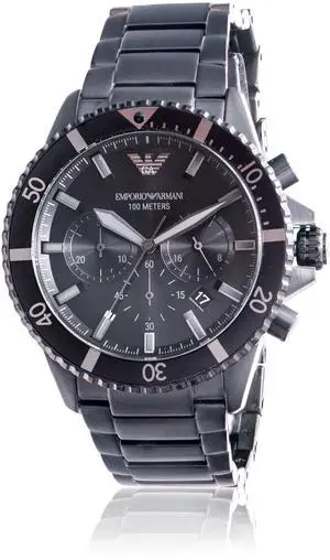 Emporio Armani Diver Black Stainless Steel Chronograph Mens Watch