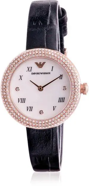 Emporio Armani Rose Gold-Tone Leather Ladies Watch
