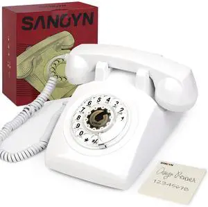 Sangyn Vintage Rotary Phone 1960s Retro Landline Telephone Old Fashioned Corded Phones with Mechanical Ringer for Home Office Desk,White