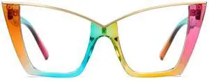 Cyxus Oversized Cat Eye Blue Light Glasses for Woman Reduce Strain UV Protection Stylish Fake Glasses8298T15 Rainbow