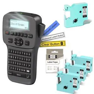 Label Maker Machine with Tapes, D210S Label Maker Waterproof-Labels, Portable Labeler Machine with Tapes 4PK Bundle 12mm 0.47 Laminated White, Wireless Labeling Machine for Jars Bottle School Supplies