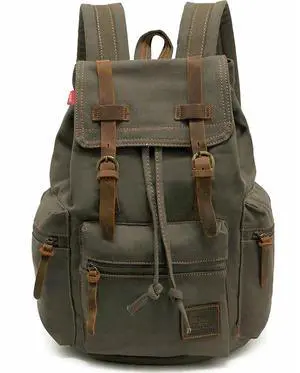 HuaChen Vintage Canvas Backpack with Leather Accents, Casual Daypack Travel Rucksack for Men Women,School College Hiking Camping - M32 Army Green