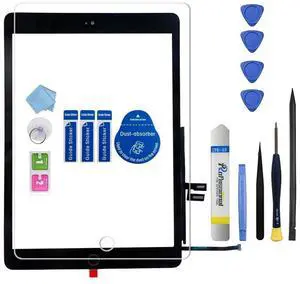 for iPad 5 (5th Generation) A1822 A1823 Screen Replacement 2017 Digitizer Touch Glass Kits, for iPad 5th Gen 9.7 Inch 2017 Released, Full Repair Sets+Home Button (White Screen)