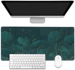EOBKLAX Mouse Pad,Lotus Leaves in Gold Line Desk Mat for Desktop,Desk Pad with Non-Slip Base and Stitched Edge,Extended Mousepad for Office and Home 35.4X15.7 Inch