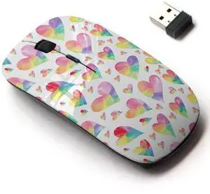 CJCBROES 2.4G Wireless Mouse with Cute Pattern Design for All Laptops and Desktops with Nano Receiver - Hearts Rainbow