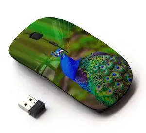 KawaiiMouse [ Optical 2.4G Wireless Mouse ] Peacock Green Vibrant Purple Blue Bird