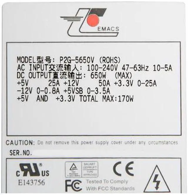 Highly EfficientDelivering over 80-84% efficiency typical at 115v, full load, the Athena Power Zippy P2G-5650V power supply saves energy and may even reduce your electric bill!
