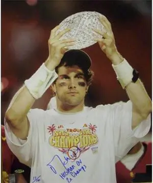 Matt Leinart signed USC Trojans 16x20 Photo w/ Trophy- Heisman 04/ 2X Champs- Leinart Hologram